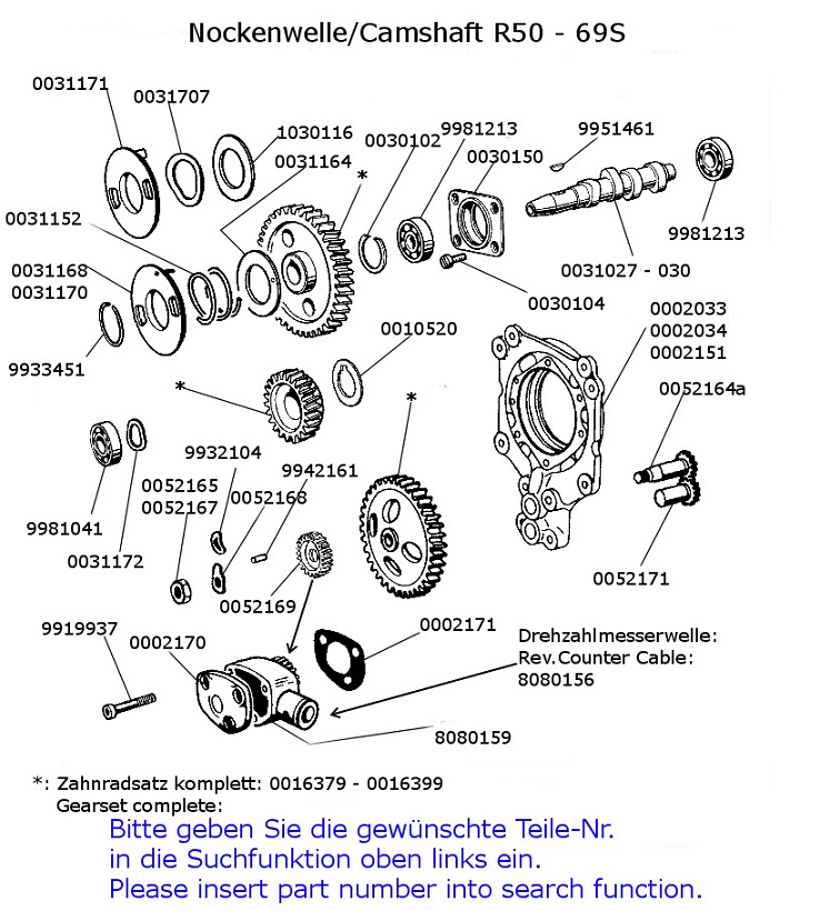 Zahnrad an Ölpumpenrad für Drehzahlmesserantrieb R50/2,60/2,50S,69S